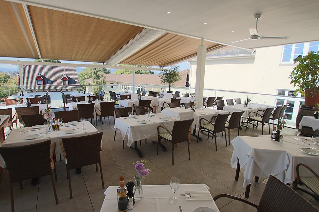 Gerne reservieren wir Ihnen Ihren Lieblingsplatz im Restaurant oder – bei schönem Wetter - auf unserer großen regengeschützten Sonnen-Terrasse.
